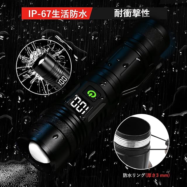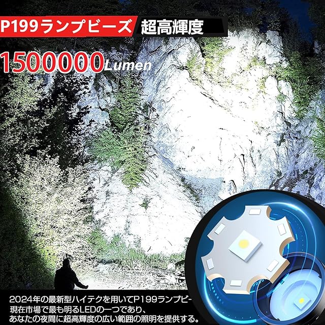 【2024最新強化版 P199 Led ディジタル電気量】 超強力 懐中電灯 led 軍用 最強 4500000ルーメン 超高輝度 USB充電式 明るいハンディライト 5モード調光 ズーム調整可能 ペンライト 軽量小型 フラッシュライト ハンドライト 手持ち 作業用携帯ライト 26650 18650 AAA電池が適用 防水 防災 新型 へっとライト 登山 夜釣り用 アウトドア 地震 停電対策