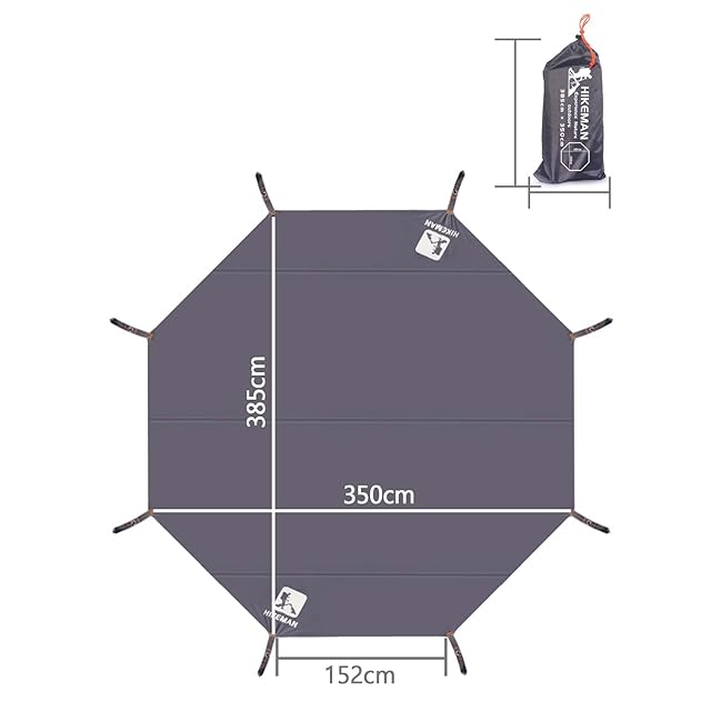 製品仕様:「八角」グランドシートLサイズ:350*385cm 材質:210Dオックスフォードクロス生地 付属品:合金アルミペグ*8本+収納袋 八角形なので、テントのグランドシートとして、特にワンポールテントにぴったりの形状です