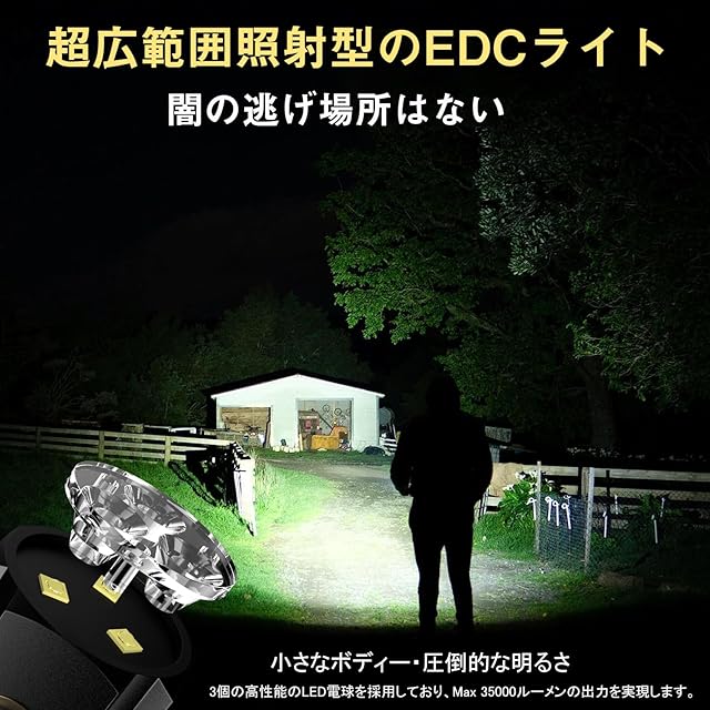 【2025年新登場、超明るく、日常使用に適している】当社のミニ懐中電灯は最新のドイツ製の高輝度チップタイプ白色LED 3個素子を採用し、最大2500ルーメンの高出力を提供できる!そして、最適化新設計された専用PMMAリフレクターを使用、最大光束距離は350mに達する。 懐中電灯もサイズが小さいです,持ちやすいです。 ポケットに入れたり、キーホルダーで腰にぶら下げたり。また、車のバックアップ光源として車内に配置することもできます。寝室のベッドの横に置いたりする人も多いでしょう。 日常のオブジェクト検索と経路探索に,あるいは夜犬の散歩中に道を探る。