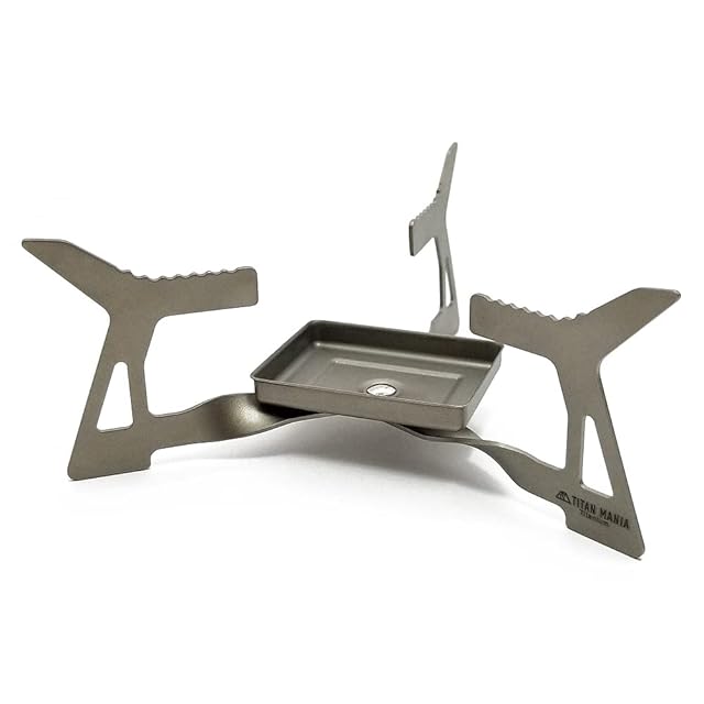 TITAN MANIA(チタンマニア) ポケットストーブ チタン製 ポケットコンロ コンパクト 折り畳み式 超軽量 頑丈 固形燃料 五徳 焚き火台 ソロキャンプ BBQ バーベキュー アウトドア キャンプ用品 収納袋付き