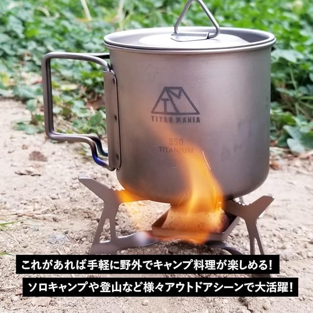 ✅受け皿をフラットタイプにリニューアル。様々な形や大きさの固形燃料を設置することが可能になりました。チタンは高い耐食性でサビに強く頑丈。小枝や落ち葉、松ぼっくりを燃料に小型の焚き火台としても。どこでも手軽に焚火や湯沸かし、キャンプ飯を楽しむことができます。