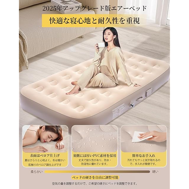 【最新のワイヤレス式·手軽省力】外部電源不要!室内やアウトドアで使える本格的なエアーベッド!市販のエアーベッドを徹底的に研究し、お客様の声を反映した最新改良版!外部電源型エアーベッドは災害やアウトドア時にプラグがなくて不便ですが、弊社の内蔵電動ポンプ付きエアーベッドは、ワンボタンで簡単に空気を入れることができます!手間いらずで、快適な寝心地を提供します!