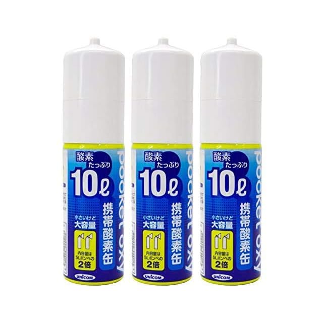 UNICOM(ユニコム) ポケットオキシ 圧縮型酸素ボンベ 10L 【3本セット】