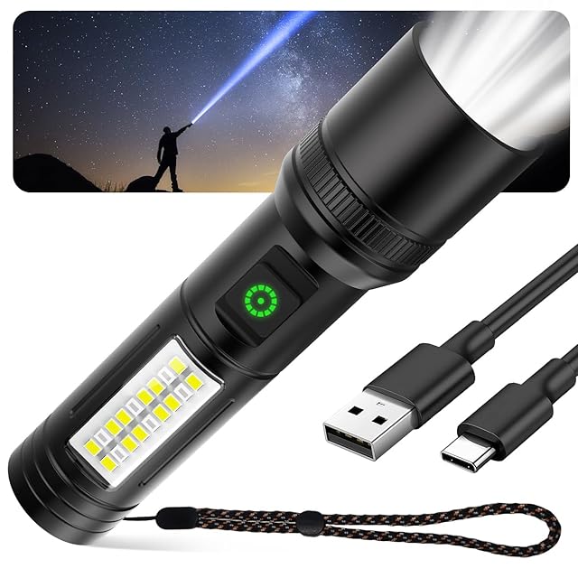 懐中電灯 小型 強力【2025年新機種・超高輝度・6点灯モード】ハンディライト 軍用【XHP160チップ・IPX6防水・COB作業灯】 ズーム式 Type-C充電式 大容量電池 フラッシュライト 高級合金素材 耐衝撃3M ハンドライト 軽量 ledライト 高輝度 防災 キャンプ 登山 夜釣り ウォーキング アウトドア 緊急用 作業用 地震 停電 避難対策
