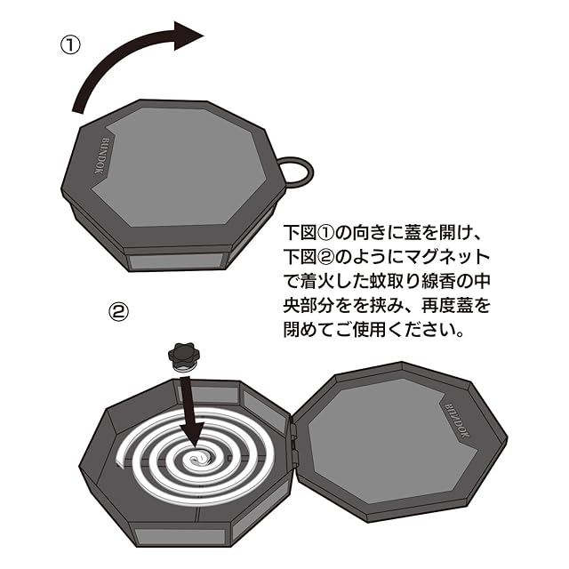 蚊取り線香が本体中央に設置されるよう設計しているため、マグネットの位置は中央ではありません
