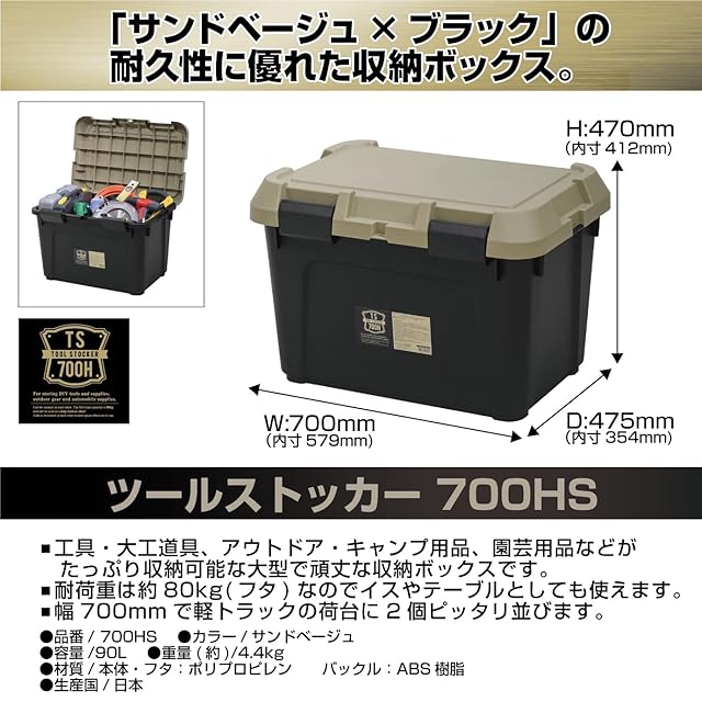 商品名:JEJアステージ 収納ボックス 日本製 アウトドア キャンプ 踏台 耐荷重80kg 車載 積み重ね [Sシリーズ ツールストッカー700HS] サンドベージュ 防災 幅70×奥行47.5×高さ47cm