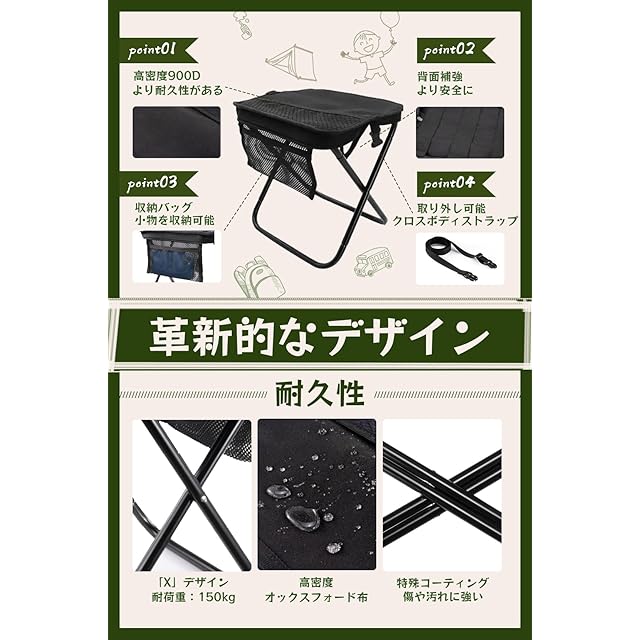 【追加の収納バッグ機能】 基本モデルと比較して、このモデル 折りたたみ椅子 は革新的な収納バッグを追加し、小物の収納に便利です。