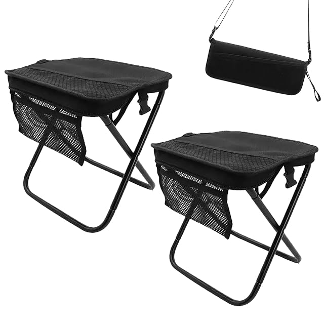 折りたたみ椅子「ショルダーと付き」超軽量 アルミ合金 折りたたみいす 小型 軽量 持ち運び コンパクト 収納袋一体 折り畳み椅子 調節可能なショルダーストラップ付き キャンプ より安定 アウトドア、 チェア 簡易アウトドア チェア お花見、 釣り 持ち運び 小型 説明書付 ブラック(ブラック/2個)