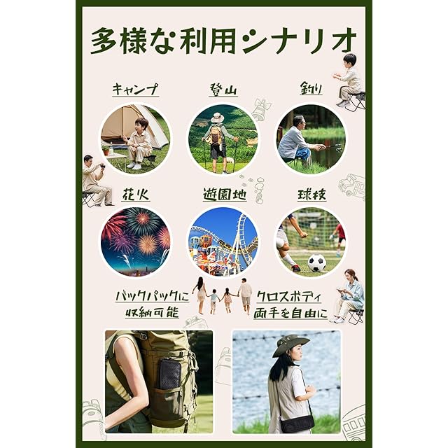 【様々なシーンに適応】簡易椅子は、お花見、キャンプ、釣り、バーベキュー、スポーツ観戦などのアウトドアはもちろん、公園、登山、ピクニック、行列などの使用シーンまで、幅広い用途があります。レジャーやお子様のアクティビティに最適です。