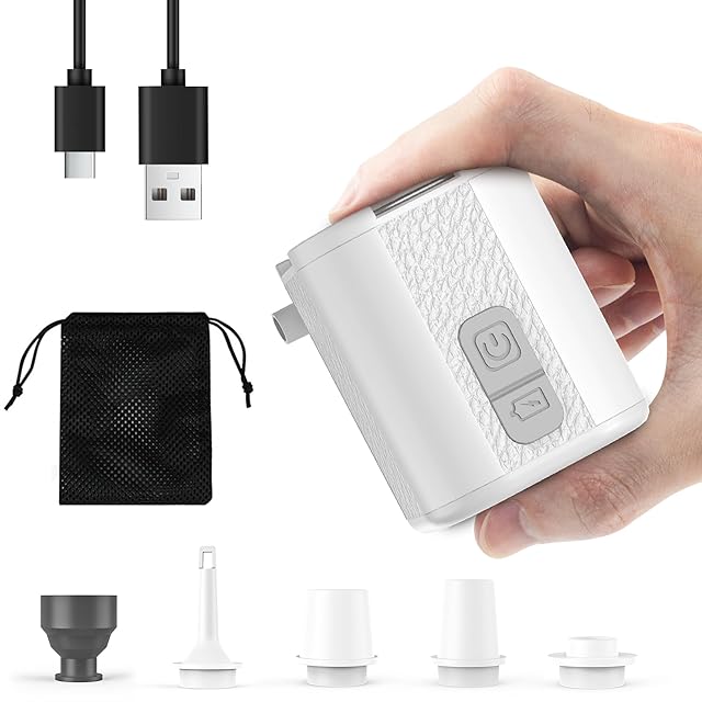 【超小型エアーポンプ】電動エアーポンプは、わずか100gの超軽量で、収納や持ち運びがとても便利です。コンパクトなサイズで、ワンボタンで簡単に操作でき、手のひらサイズのため子供でも簡単に使用できます。ビーチ、キャンプ、アウトドアなどでも大活躍します。