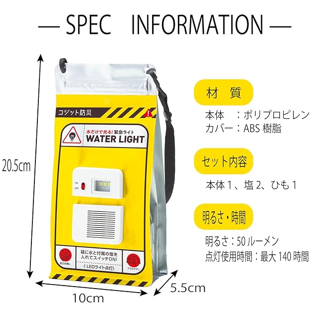 コジット 災害時 停電時の非常灯として 振るだけ 発電 連続140時間点灯 軽量で持ち運びやすい COGIT防災 水だけで光る緊急ライト