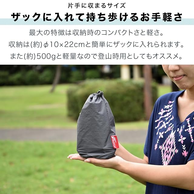 ✅【ザックに入れて持ち歩けるお手軽さ】 最大の特徴は収納時のコンパクトさと軽さ。収納は(約)φ10×22cmと簡単にザックに入れられます。また(約)500gと軽量なので登山時用としてもオススメ。