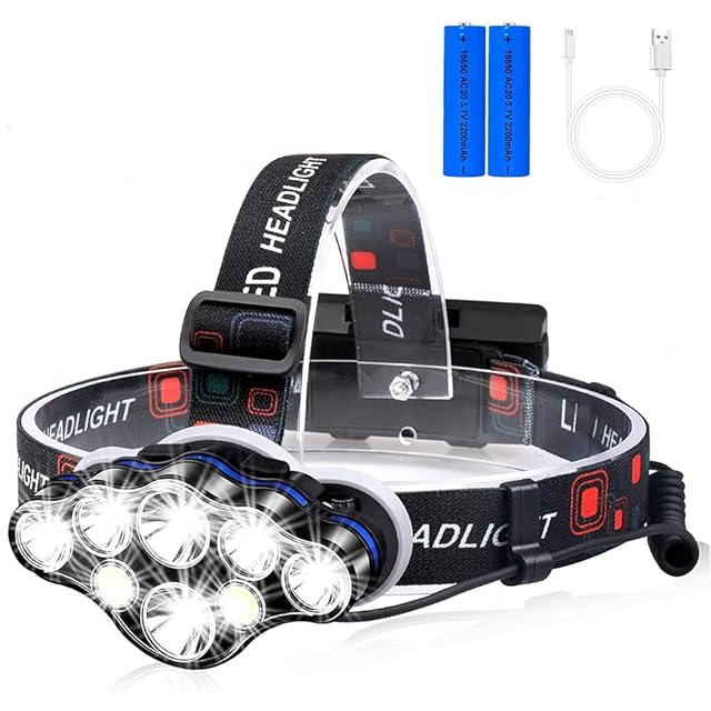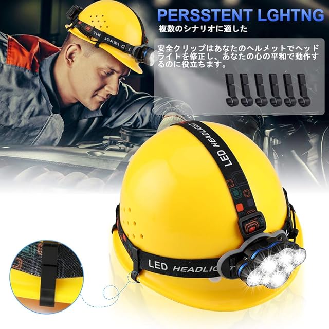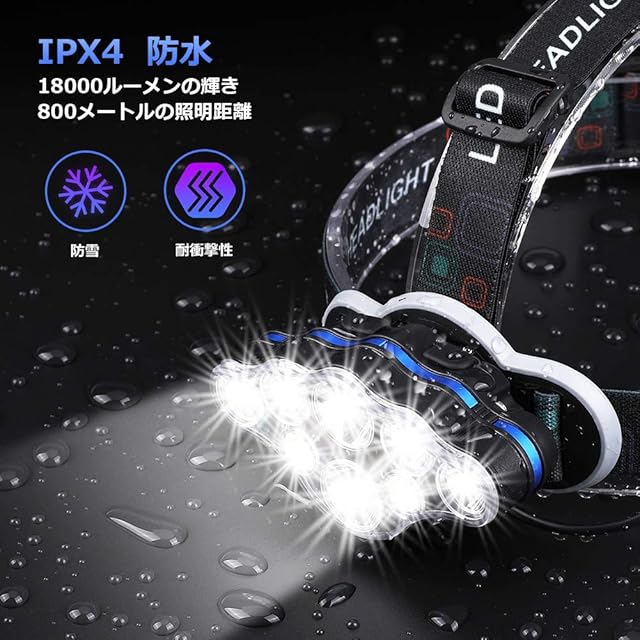 【超長寿命】 ヘッドライトは8つのLED電球と1つの赤い安全テールライトで構成しております。そして18,000ルーメンの明るさと800メートルの照明範囲があります。お周りの環境をはっきり見えて、危険から遠ざかることを助けてくれます。釣り、ジョギング、ジョギング、ハイキング、キャンプ、自転車、読書、探検、その他の屋外活動に適しています。