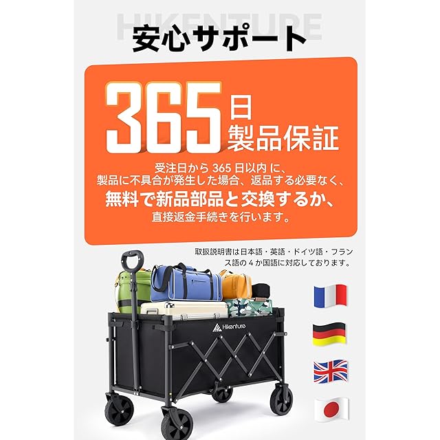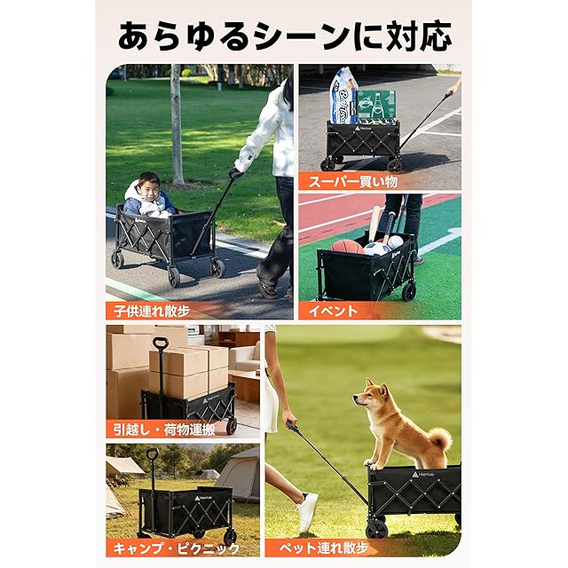 商品名:Hikenture キャリーワゴン 【2025新登場】 自立収納 アウトドアワゴン ミニ 超軽量4.7kg 大容量 100kg高耐荷重 子供乗せれる キャンプ カート ワンタッチ展開&収納 持ち運び便利 コンパクト キャリーカート 頑丈スチール制 多地形対応 ワイドタイヤ搭載 アウトドア・荷物運び・買い物・釣り・イベント・引っ越し・ゴミ出し