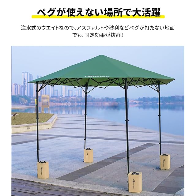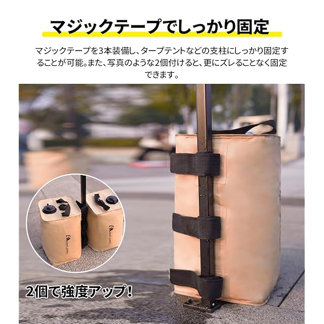 【しっかりと安定させる、1個あたり容量10L】 ウエイトは最大まで水を入れると約10kgになります。重量があるのでしっかりと固定できます。