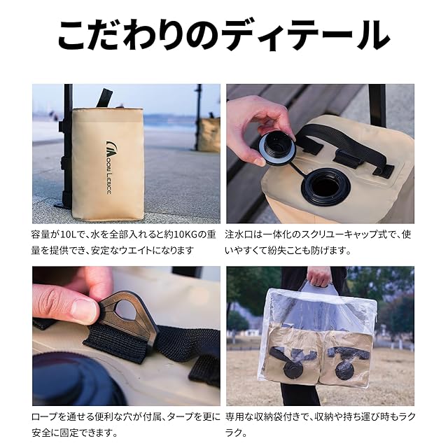 商品名:MOON LENCE ウエイトバッグ 注水式 10kg マルチウェイト テント タープ用 固定バンド付き 持ち運びに便利なバッグ付 4個セット