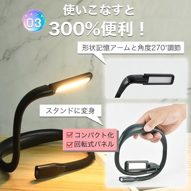 首にかけてつかう 両手が空く ハンズフリー で楽ちん 散歩 読書 勉強 作業灯 など 便利な ネックライト