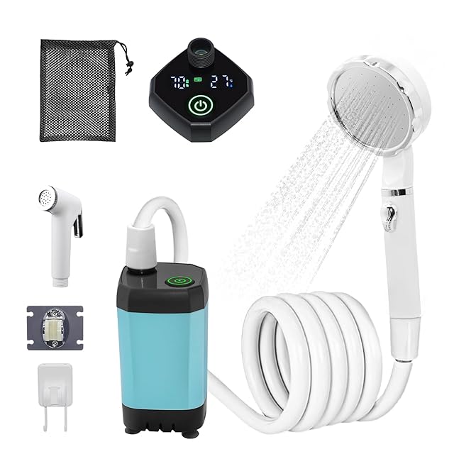 【1年】セット内容:シャワーポンプx1、2m ホースx1、シャワーヘッドx1、直射ヘッドx1、ホルダーx2、収納袋x1、日本語取扱説明書x1。この商品には1年付き、初期不良などが発生する場合は、メールにでお気軽にご連絡ください。または、製品ページで「販売元」>「質問する」より当店までお問い合わせください。