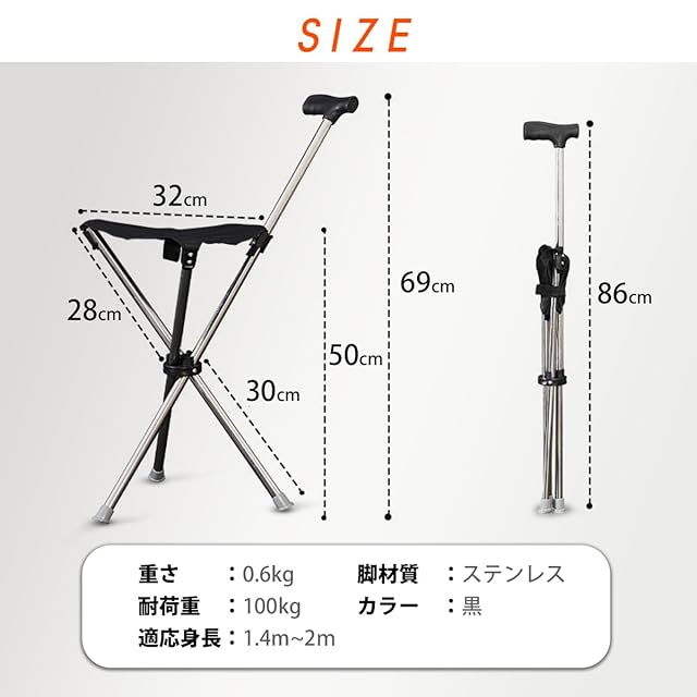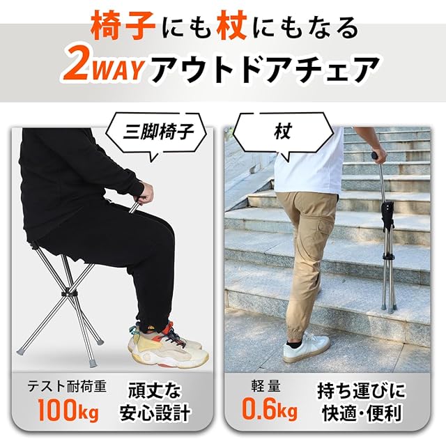 Laff tigo. ステッキチェア イス 椅子 座れる杖 杖 折りたたみ ゴルフ 休憩 軽量 女性 座れるステッキ 歩行補助杖 介護 susu軽量 三脚 チェアー 椅子 イス