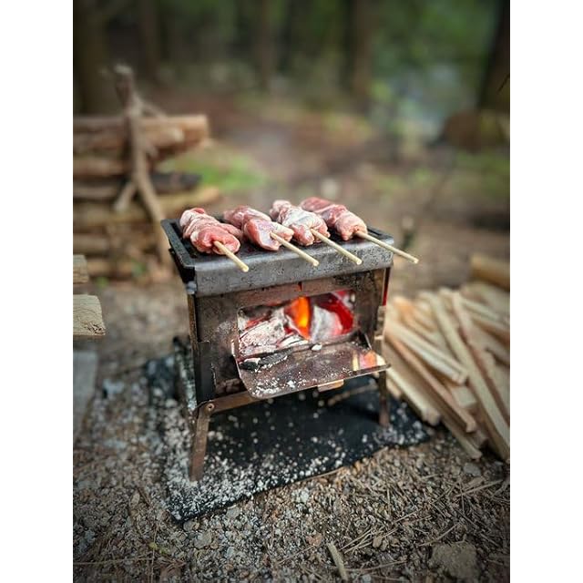 商品名:笑's コンパクト焚き火グリルB-6君 3点セット(B6君/専用ハードロストル/グリルプレート)SHO-002, 炭, バーベキュー, 卓上, 小型, 軽量, コンパクト収納, ステンレス, 焚火台, 鉄, 雪山, 雪中キャンプ, 冬キャンプ, 引き籠りキャンプ, おこもりキャンプ, 日本製, 工場直売, FACTRY PRIDE