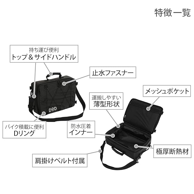 DOD(ディーオーディー) ソフトくらこ(10) 10L 極厚断熱材 ソフトクーラーバッグ ツーリング や ソロキャンプ や フェス に 薄型形状 CL1-720-BK