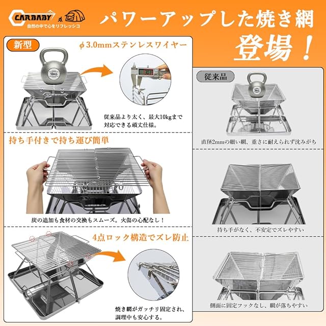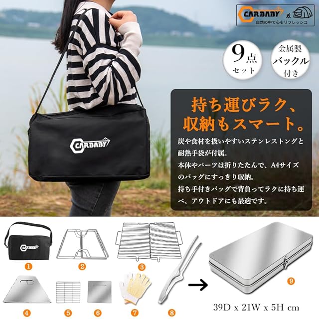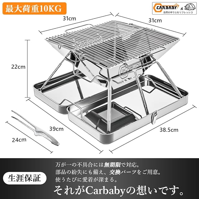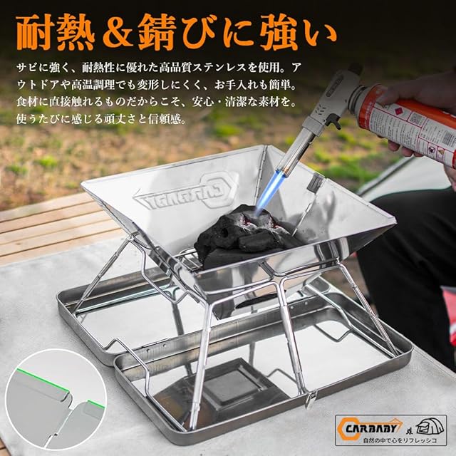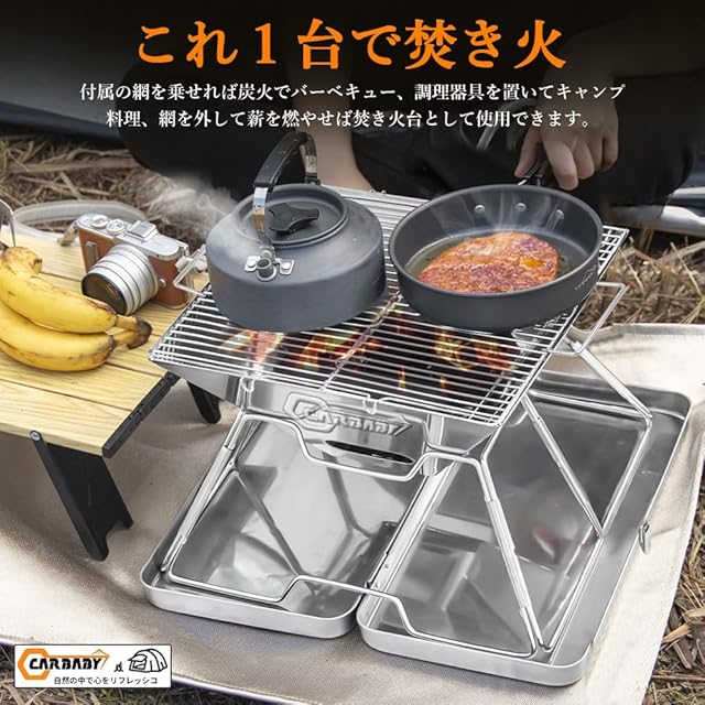 商品名:CARBABY バーベキューコンロ 焚き火台 収納ケース付き ステンレス製 2-4人用 アウトドア キャンプ