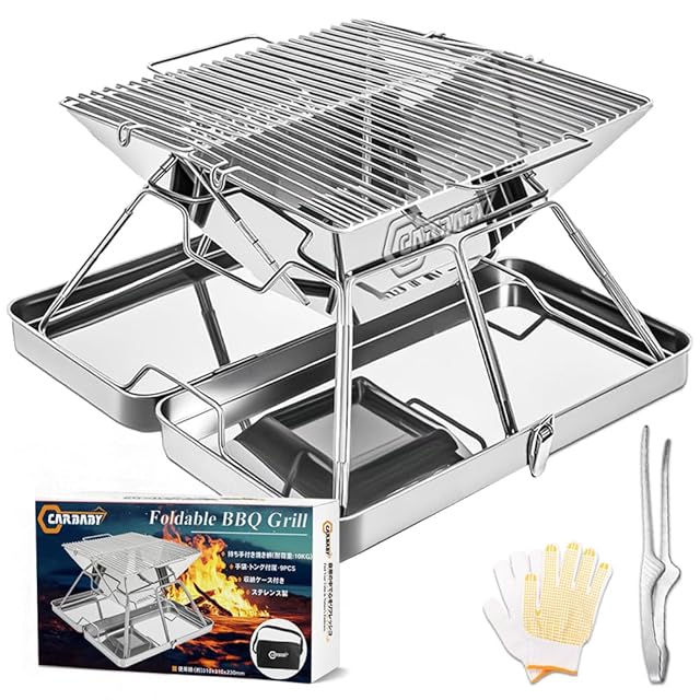 CARBABY バーベキューコンロ 焚き火台 収納ケース付き ステンレス製 2-4人用 アウトドア キャンプ