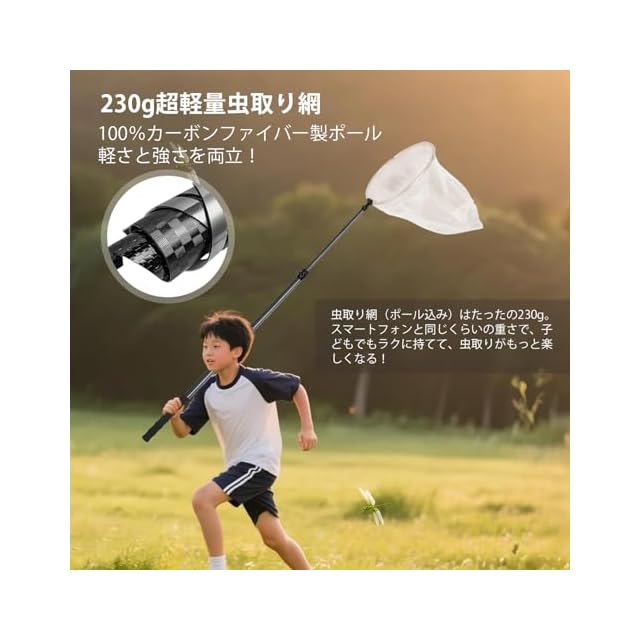 商品名:DOBEN 虫取り網 プロ仕様 カーボンファイバー製伸縮式ポール 73-180cm 直径30cm虫網 網目2mm 超軽量230g 捕虫網 むしとりあみ 子供 大人 頑丈設計