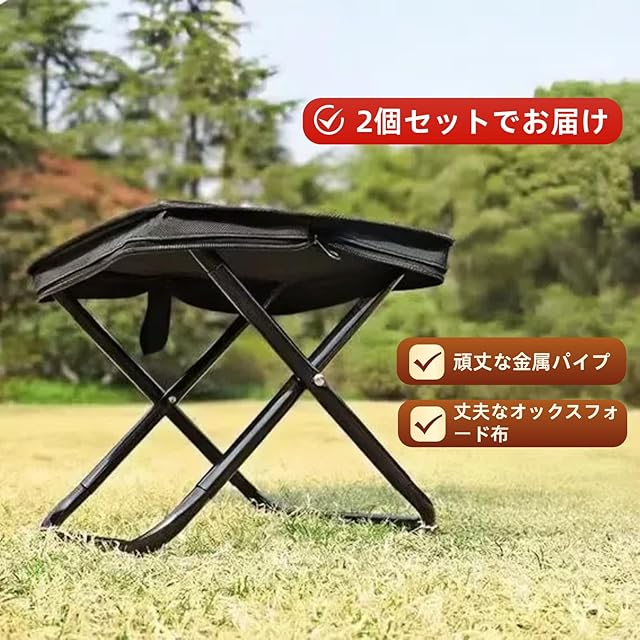【2個入り】折りたたみ椅子 折りたたみいす 折り畳み椅子 簡易携帯いす スツール仕様 軽量 コンパクト アウトドアチェア 持ち運び便利 キャンプ バーベキュー 釣り 観戦 屋外室内兼用 収納袋一体型 キャンプ用品 (ブラック)