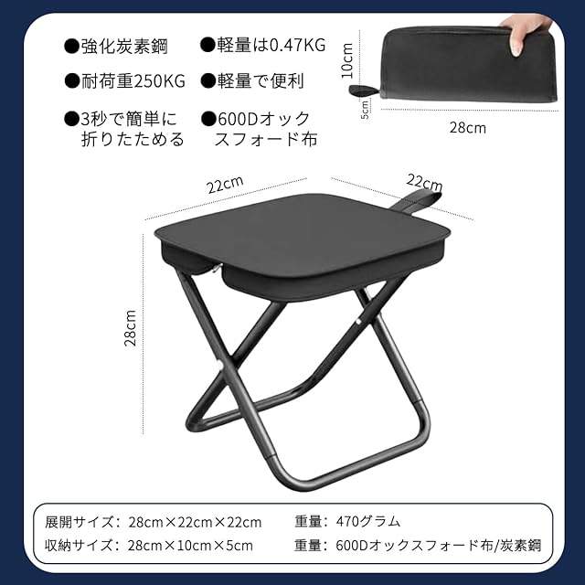 【外形サイズ】[展開時]28cm×22cm×22cm(A4ファイルより一回り大きい)[折りたたみ時]28cm×10cm×3.5cm(約2冊の小説と同じ厚さ)女性でも片手で持ち運べ、自転車の前カゴに載せることも問題ありません!