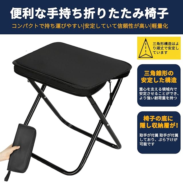 [WINROMTICO] アウトドアチェア 折りたたみ椅子 キャンプチェア 行列待ち椅子 折りたたみ式 手提げ式 軽量 携帯 コンパクト 耐荷重250KG 簡単に折りたためる 持ち運びに便利 旅行 ピクニック スケッチ 釣り 登山 黒色