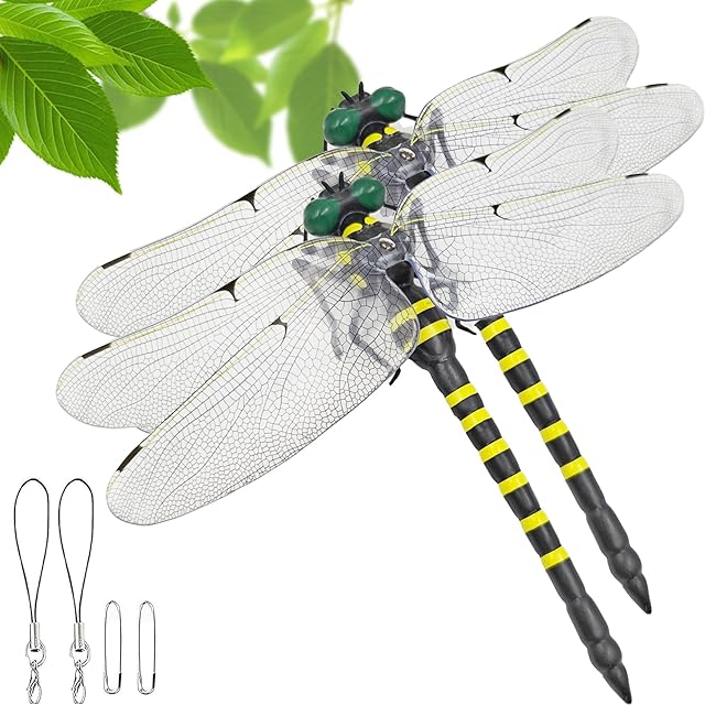 DreMker オニヤンマ 虫除け トンボ模型 19cm 特大 リアル 蚊 蜂 昆虫 虫避け対策 アウトドア キャンプ ハイキング 登山 釣り ベランダに最適 屋外 ベランダ 室内装飾など ストラップ/安全ピン付き 2025新型 (2個セット, 19センチ)