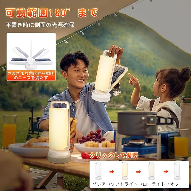 商品名:LED ソーラー ランタン キャンプランタン USB充電 太陽光給電 3色切替白色 昼白色 暖色 5000mAh大容量 蓄光 実用点灯8-100時間モバイルバッテリー機能付き 折り畳み式 無段階調光 LEDランタン アウトドア 登山 夜釣り 停電 非常用 防災グッズ