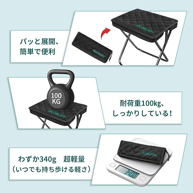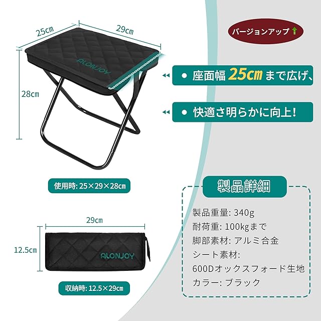 商品名:ALONJOY 【新登場Lサイズ】どこでも座れる コンパクト 超軽量 アルミ合金 折りたたみチェア 持ち運び 便利 アウトドアチェア 収納ケース一体型 ポケットチェア 携帯椅子 キャンプ 椅子 日本語取扱説明書付き 旅行 ハイキング お釣り フェス 試合観戦 (ブラック)
