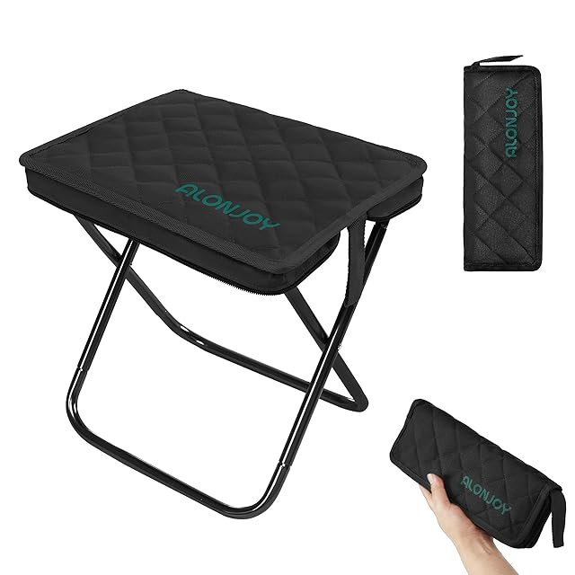 ALONJOY 【新登場Lサイズ】どこでも座れる コンパクト 超軽量 アルミ合金 折りたたみチェア 持ち運び 便利 アウトドアチェア 収納ケース一体型 ポケットチェア 携帯椅子 キャンプ 椅子 日本語取扱説明書付き 旅行 ハイキング お釣り フェス 試合観戦 (ブラック)