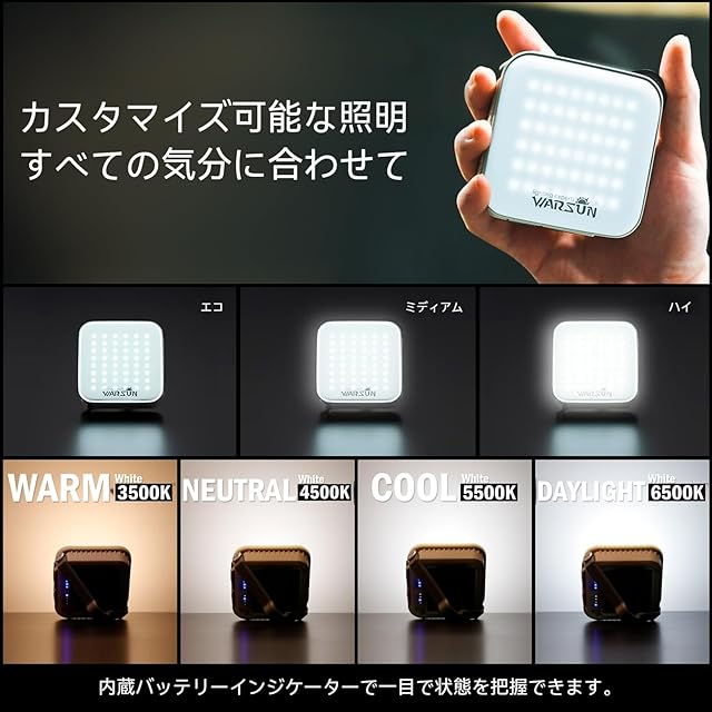 【三色切替/4モードの色温度切り替え】昼白色昼光色ナチュラル三色切り替え、キャンプ、バーベキューなどのアウトドア活動に操作しやすくて、カットボタンを押すと、ライトの色温度を切り替えることが可能で、6500K→5500K→4500K→3500に変更できます。