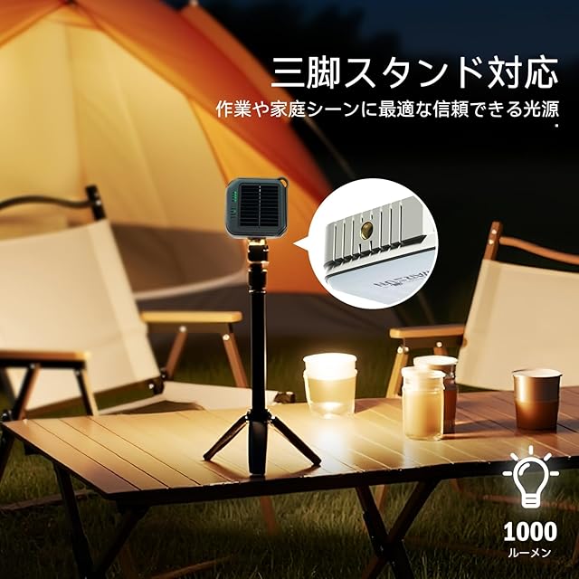 【明るさ最大1200ルーメン】1台でもソロキャンプでは十分な明るさです。ファミリーキャンプなど広範囲を照らす際は、複数台の使用をおすすめいたします。また、三脚接続可能で、撮影時に補助光として使用可能で、色々な場所に適用します。
