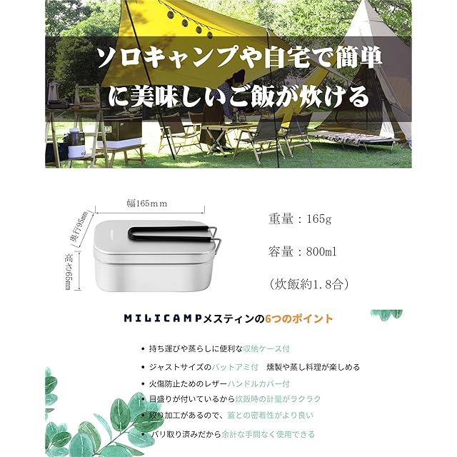 商品名:MiliCamp MR-250 Pro メスティン 4in1セット キャンプ 飯ごう 2合炊き バリ取り済 アウトドア 自宅炊飯 防災対策 絞り加工 目盛付