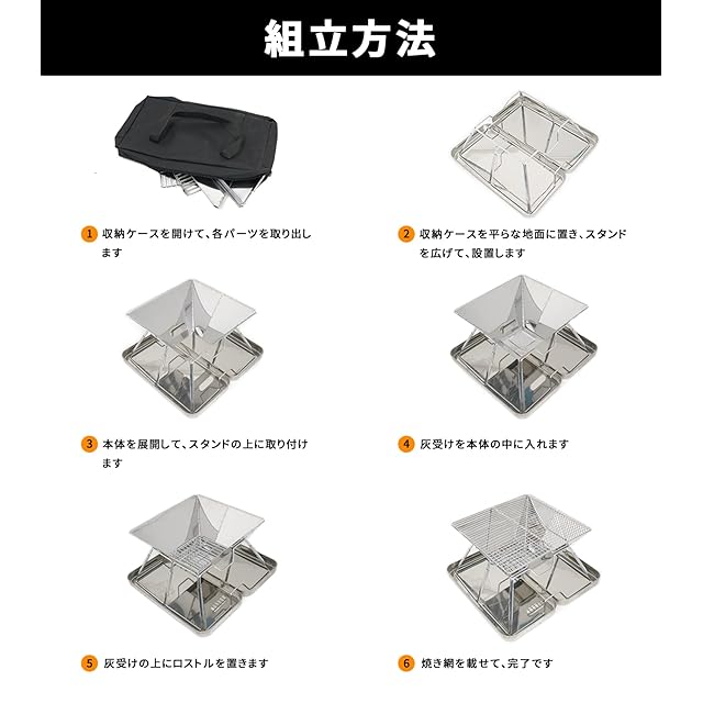 ★【組立簡単】各パーツを見れば、直感的に組立られる程易しさです。組み立て・撤収を素早く済ませることで、焚き火やBBQの時間を最大限に過ごすことができます。取り扱い説明書もありますので、初心者でも安心してお使いいただけます。
