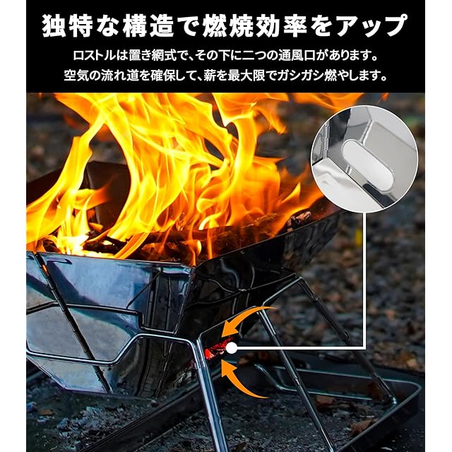 ★【1台2役・手入れしやすい】焼き網を載せたら、バーベキューコンロとしてバーベキューできます。焼き網を下げたら、焚き火台としても使っていただけます。厳選されたステンレススチール、焚き火の熱にも耐えられる。BBQや焚き火で汚れた場合は丸ごと洗うことができます。