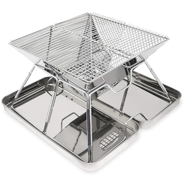 MOON LENCE バーベキュー コンロ 焚き火台 折りたたみ ステンレス製 2-4人用 コンパクト 軽量 bbq アウトドア キャンプ 収納ケース付き A101
