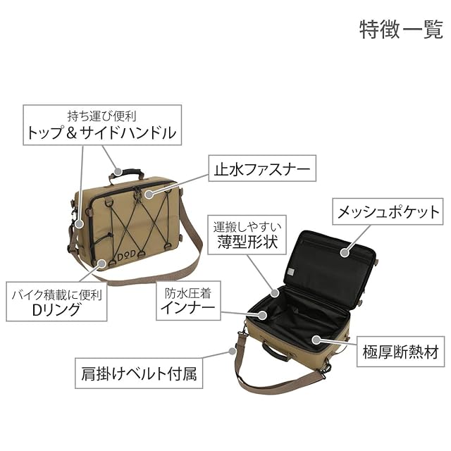 商品名:DOD(ディーオーディー) ソフトくらこ(10) 10L 極厚断熱材 ソフトクーラーバッグ ツーリング や ソロキャンプ や フェス に 薄型形状 CL1-720-TN