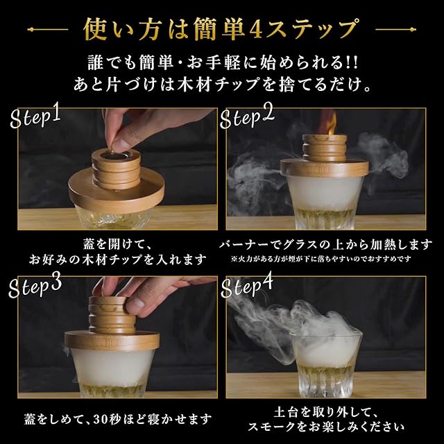 商品名:ReSmoked【家飲みを極める】 燻製器 家庭用 キャンプ グラストップ カクテルスモーカー 5種類チップ 説明書 レシピブック付 ウイスキー専門家監修