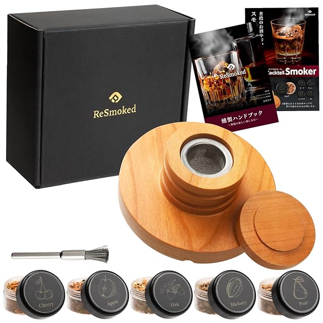ReSmoked【家飲みを極める】 燻製器 家庭用 キャンプ グラストップ カクテルスモーカー 5種類チップ 説明書 レシピブック付 ウイスキー専門家監修