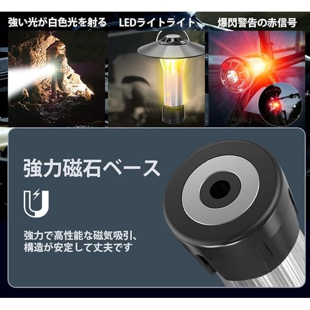 LEDランタン:アウトドア向け~実用的なミニランタンで、便利性。24.8 cm × 8.6 cmの持ち運びにコンパクトなサイズです。 手に持ったり、バッグにぶら下げたり、腰にぶら下げたり、磁石ベースも搭載し、金属に貼り付けて使用することも可能です