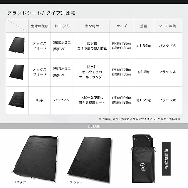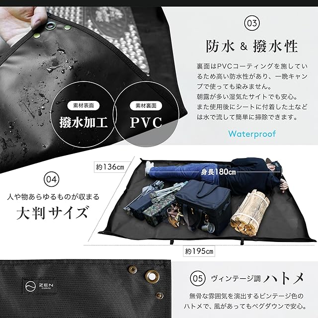 商品名:ZEN Camps グランドシートレジャーシート テント 195×136m 防水 両面撥水 厚手1680D 高耐久 耐摩耗 収納袋付き キャンプ アウトドア ピクニック (バスタブ型)
