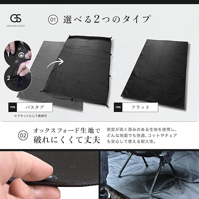 丈夫なポリエステルオックスフォード生地によって、高い耐久性を誇ります。地面に砂利などがあっても安心して敷いて頂けます。