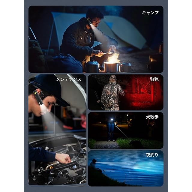 【一台多役・夜間の活動に最適】取付可能なヘッドバンドが付属しているので、懐中電灯としても使用可能です。キャンプ、ハイキング、釣り、DIYなどあらゆる夜間活動に最適な光を提供します